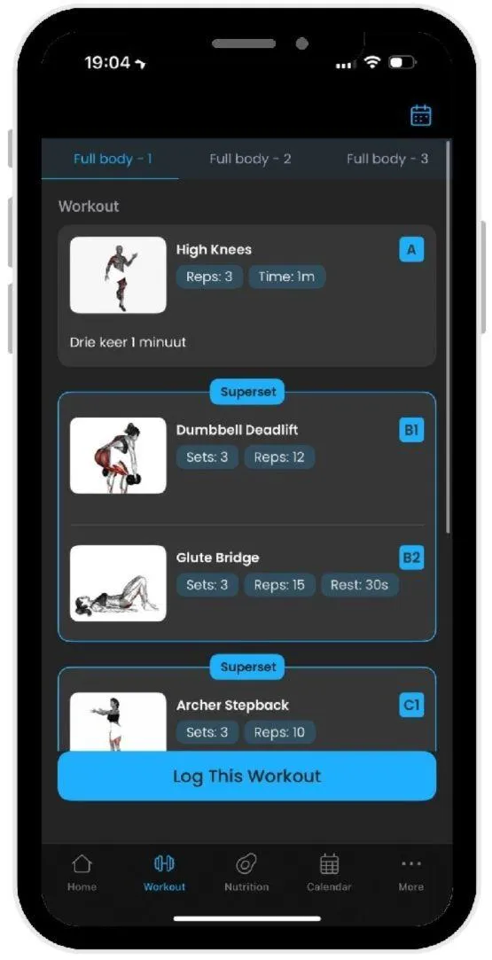 Of je nu thuis traint of in de sportschool. Het plan past zich aan jou aan, niet andersom.
